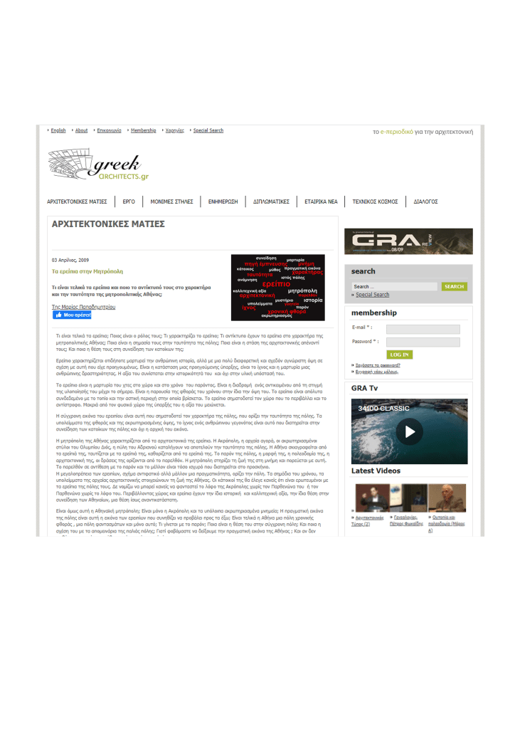 Παπαδημητρίου, Μ. (2009, Απρίλιος 03) Τα ερείπια στην Μητρόπολη. GreekArchitects.gr. Ανακτήθηκε εδώ